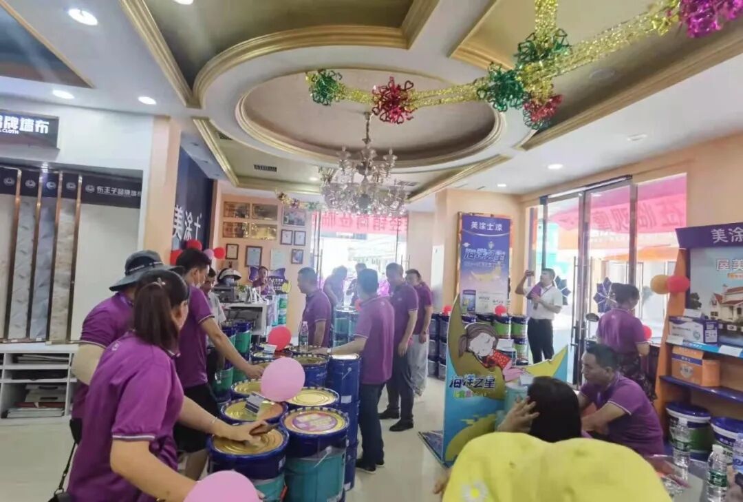 參會客戶參觀蓬安縣千丘塝村的鄉(xiāng)村別墅,觀摩美涂士從底到面,從內(nèi)到外的涂裝解決方案;隨后前往營山藝術(shù)漆店面,觀摩店面微團會。微團會作為引爆終端活動的利器,現(xiàn)場熱烈的簽單氣氛感染了參會嘉賓,紛紛表示愿意在美涂士的帶領(lǐng)下落地微團會。